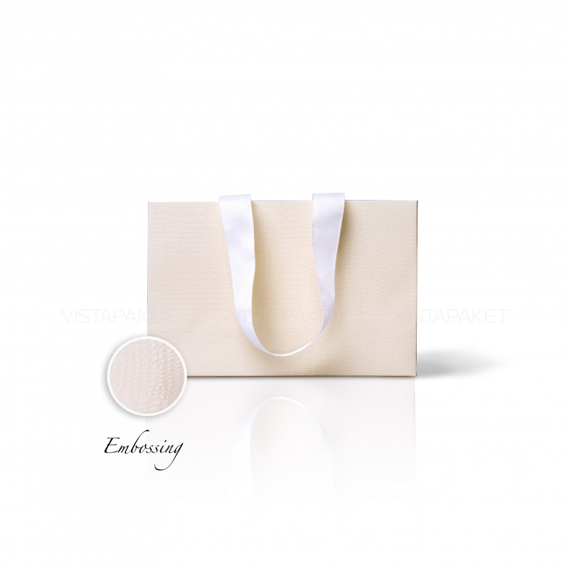 Bolsa de papel crema 23x8x15 cm Embossing, estructura 12 Horizontal